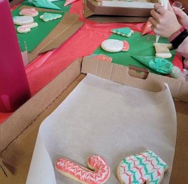 I bring all supplies and guide you through decorating sugar cookies so they'll look as great as they taste. Call me or text me to get your group on the schedule.
